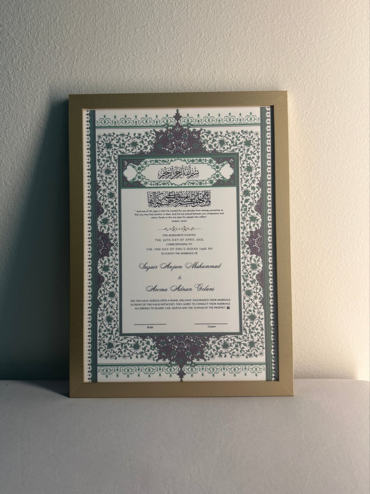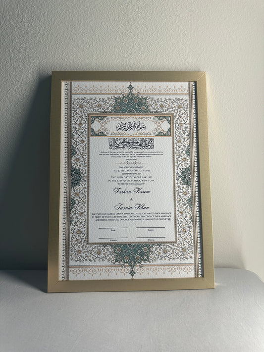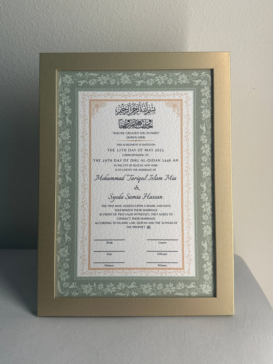 Luxury Nikkah Certificate - BAHAAR Sage Green