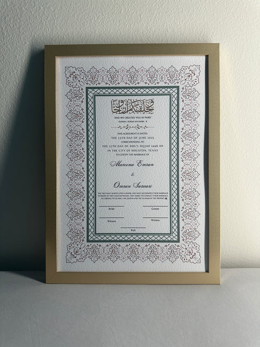 Luxury Nikkah Certificate - BAHAAR Forest Green