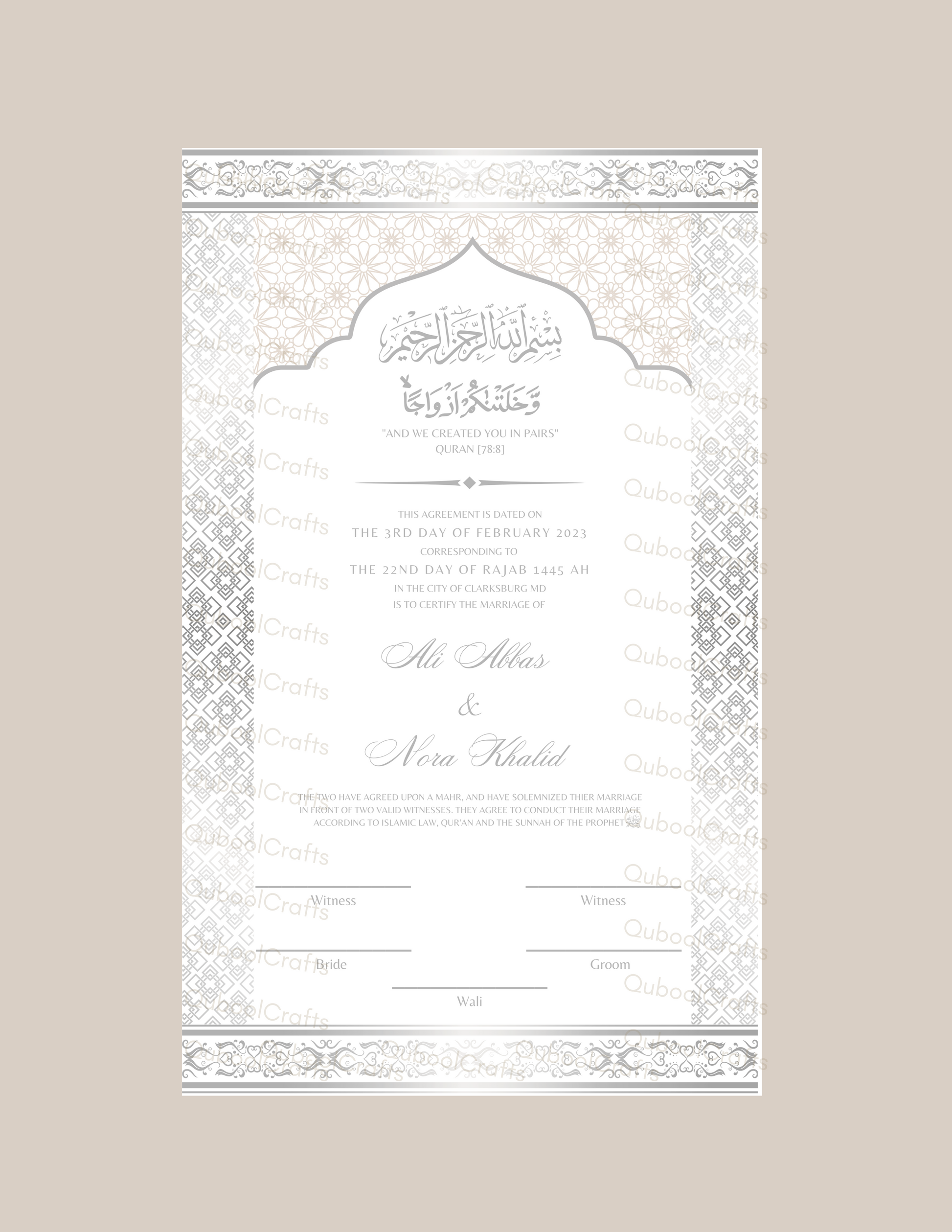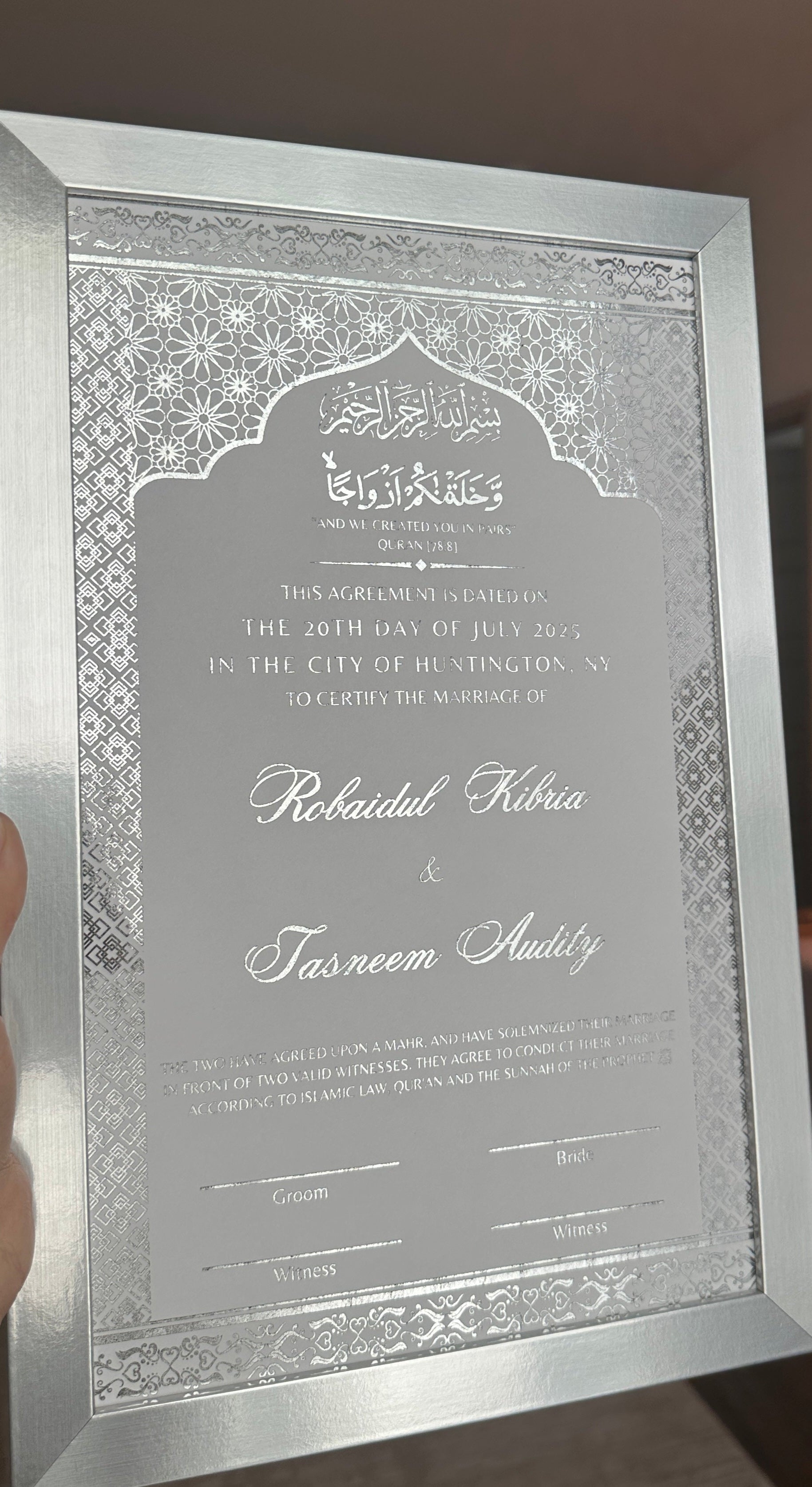 Luxury Nikkah Certificate - ZIYA (Silver Foiled)
